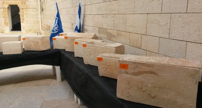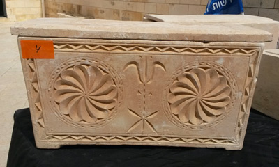 Un des ossuaires gravés qui a été trouvés portait le nom » Ralfin « , écrit en carré caractéristique de l’écriture hébraïque de l’époque du Second Temple. Ce nom est apparemment une forme hébraïsante d’un nom romain inhabituel. Selon le Dr Eitan Klein, directeur adjoint de l’ Unité de Prévention des vols des antiquités, qui a examiné les ossuaires, » c’est la première fois que ce nom apparaît sur un ossuaire de la Terre d’Israël ». Certains des ossuaires sont gravés avec des inscriptions grecques, y compris les noms des défunts. Selon le Dr Eitan Klein , « ce sont des découvertes singulières. Les inscriptions sur les ossuaires nous fournissent des informations supplémentaires sur la population juive de l’époque à Jérusalem. » Le vol d’une antiquité est, en Israël, une infraction grave passible de 5 ans de prison et le trafic non-autorisé est un délit punissable par la loi d’une peine de prison de trois ans.