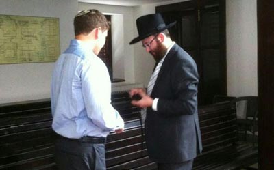 Avner Netanyahou Le fils du premier-ministre, Avner, s’est tourné vers le Rav Avraham Greenberg et lui a demandé s’il avait des Téfilines avec lui, parce qu’il n’avait pas encore prié. Lorsque le Rav répondit par l’affirmative, Avner est sorti en direction de la synagogue « Ohel Moché » se trouvant à côté, et s’est mit à prier. Malgré son passé historique important, la synagogue « Ohel Moché » n’est plus en fonction. Elle est aujourd’hui une partie du musée, mais aucune prière n’y est organisée de manière fixe, c’est pour cela qu’il ne s’y trouve pas de Sidourim (livres de prière). Sans attendre, le jeune Avner a sorti son téléphone portable et a prié dans son Sidour virtuel.