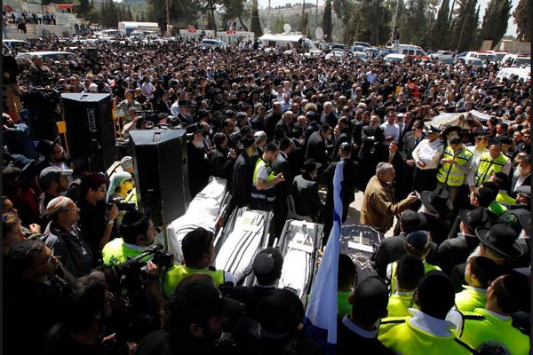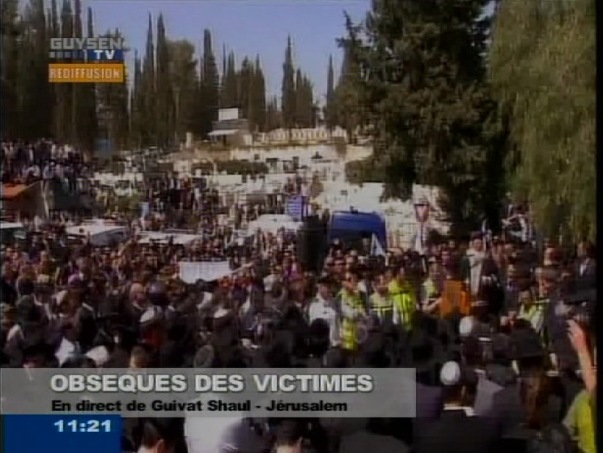 toute l'équipe de www.universtorah.com qui est proche de la famille endeuillée, vient d'arriver de l'enterrement à Jérusalem des 4 Tsadikim: Jonathan, Arié et Gabrielle Sandler ainsi que la petite princesse Myriam Monsonégo. Toute un peuple pleure avec dignité comme la affirmé le Grand Rabbin d’Israël Rav Shlomo Amar: ''nous ne pleurons pas de faiblesse, nous nous relevons et nous renforçons, ils n'arriveront pas à nous briser, nous continuerons à enseigner aux enfants d'Israël la sainteté et la Torah. D. vengera ses victimes''.