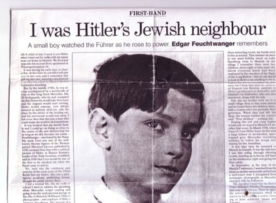 Aujourd’hui âgé de 89 ans, Edgar Feuchtwanger vit en Grande-Bretagne grâce à ses parents qui ont pu acheter des visas pour quitter l’Allemagne en 1938, alors que l’étau se resserrait sur les juifs. Sa famille n’a pas tout de suite pleinement réalisé la menace que représentaient les nazis et leur célèbre voisin en particulier. « Nous savions probablement dès 1932 qu’il y avait un danger. Mais évidemment, on ne réalisait pas sa gravité, et comme il allait se révéler mortel », se souvient-il dans un anglais encore teinté d’un léger accent allemand.