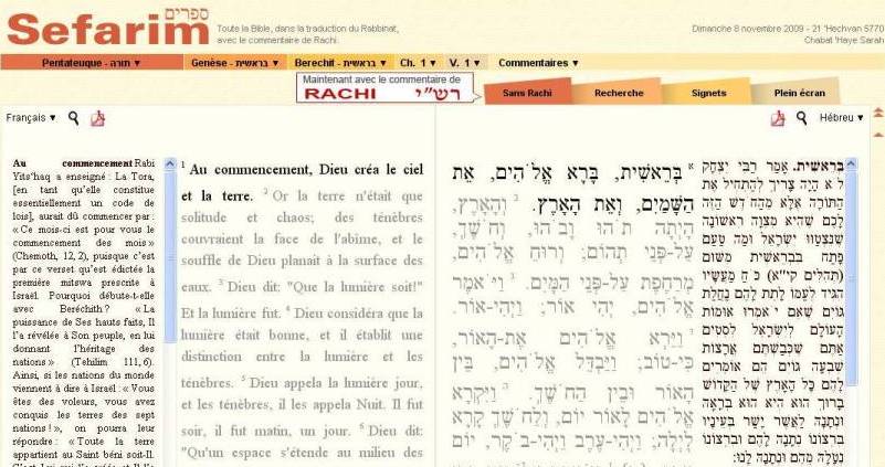 Après avoir offert aux internautes la première traduction juive de la Torah, le site « Sefarim.fr », créé par Laurent Munnich, réussit l'exploit de fournir l'intégralité du commentaire de Rachi en hébreu et en français. Les internautes francophones peuvent désormais retrouver sur la « toile» l'intégralité du commentaire de Rachi sur le 'Houmach, en français et en hébreu. L'outil est particulièrement performant puisque le texte sacré s'affiche verset par verset. Chaque fois que Rachi a apporté un commentaire, celui-ci apparaît en hébreu dans une colonne de droite, et en français dans une colonne de gauche. On est frappé par la similitude avec une page du Shas où le commentaire vient également encadrer le texte. Le texte français mis en ligne est celui de M. Jacques Kohn, éminent talmudiste et bibliste, magistrat français à la retraite qui propose une traduction non seulement rigoureuse mais aussi explicitée là où la pensée de Rachi n'est pas immédiatement compréhensible. Autre avantage majeur, le texte en hébreu est proposé en écriture car¬rée avec voyelles. Sefarim.fr avait déjà surpris voilà quelques années, en mettant en ligne pour la première fois la Bible du Rabbinat. Cette nouvelle version du site vient très heureusement combler un manque. Cette publication en ligne est le fruit d'un partenariat très judicieux entre les éditions Gallia, basées à Jérusalem, dont on connaît bien le travail remarquable, l'auteur, Jacques Kohn, et Akadem Multimédia, le pôle Nouvelles technologie du Fonds social juif unifié, basé à Paris. Pour le directeur d'Akadem Multimédia, Laurent Munnich, interrogé par Hamodia, il s'agit « d'un développement naturel. Internet est un outil d'une importance probablement comparable à celle de la mise au point de l'imprimerie, vers 1450. De la même façon que les Juifs se précipitèrent sur cette invention magnifique et créèrent des ateliers dans toutes leurs communautés, de la même manière les Juifs sont aujourd'hui de très gros utilisateurs et producteurs de sites internet. Il était naturel, poursuit, le directeur d'Akadem multimédia, que le Fonds social juif unifié, qui impulse et coordonne la vie culturelle juive en France, devienne un acteur majeur de ce secteur. Akadem Multimédia est un petit studio de production sur Internet, qui compte cinq personnes. Nous avons pour vocation de mettre les nouvelles technologies au service de la diffusion de la culture juive. C'est ainsi que nous produisons Akadem, le campus numérique juif qui propose des milliers d'heures de conférences en ligne, ou encore Toumanitou, qui propose une sonothèque en ligne des enseignements du Rav Ashkenazi (Manitou) ou encore Rachel, le catalogue des bibliothèques hébraïca et judaïca. Quand je me suis rendu compte que sur Internet il n'existait pas une seule version "casher" de la Torah en français, je me suis dit qu'il y avait là un véritable affront à effacer. .. Il était ensuite naturel de proposer une version agrémentée des commentaires de Rachi dont chacun sait qu'ils permettent une véritable redécouverte du texte sacré. Nous avons encore beaucoup de projets en tête, poursuit Laurent Munnich, et en particulier une version sonore du texte de la Torah, en français et en hébreu. En effet, il y a une forte demande de la part des non-voyants et des personnes âgées qui ne peuvent plus se rendre facilement à la synagogue ou dans les lieux d'étude. Il y a également une forte demande de la part des enseignants et des parents d'élèves qui veulent accompagner leurs enfants dans l'apprentissage de la lecture et qui souvent ne maîtrisent pas forcément bien la langue. Si Internet permet de les aider, pourquoi s'en priver? », conclut-il. L'adresse du site: http://www.sefarim.fr Source : Hamodia 21octobre 2009 |