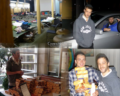 Ils ont visité les abris universitaires où les étudiants vivent dans des dortoirs. Tous les cours à Rutgers University ont été annulés au moins jusqu’à lundi, et la plupart de la ville est sans électricité, sans nourriture casher. Les bénévoles et Chlou’him du Rabbi ont distribué des centaines de repas qui se chauffe de façon autonome. Les repas seront distribués pour les jours à venir, jusqu’à ce que tout revienne à la normale. Ils distribueront les repas pendant l’heure du déjeuner et le dîner, en dehors des 2 salles à manger ouvertes , situé sur l’un des 5 campus.