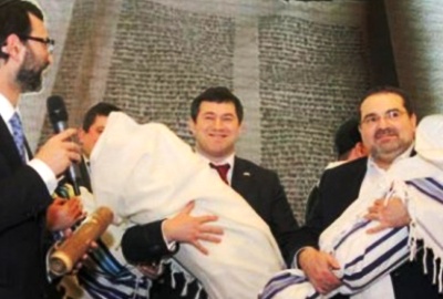 Cette cérémonie émouvante eu lieu jeudi à l'occasion de l'allumage de la 5ième bougie de 'Hanouka. Etaient présents des ministres et des députés avec à leurs tête le ministre de la Justice. Ils sont rentrés à la synagogue, les rouleaux de la Tora dans leurs mains.