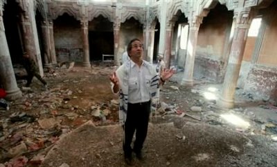 L'inscription en hébreu qui la surmonte, "Ecoute, Israël", n'est presque plus lisible et des pots de peinture vides jonchent le sol. L'emplacement des bains rituels est un dépôt d'ordures où des chats errants cherchent de quoi manger à côté d'une vieille machine à laver, sous l'oeil de femmes voilées.