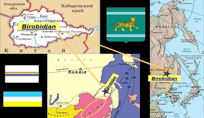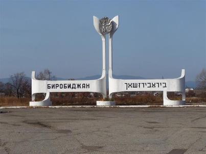 Entrée de la région juive du Birobidjan Mais la nouvelle vie des habitants du Birobidjan fut rythmée par les sautes d'humeur des dirigeants soviétiques. Les purges de la fin des années 1930, qui décimèrent les personnalités les plus motivées du Birobidjan, et la naissance du concept de "citoyen soviétique" au cours de la Seconde Guerre mondiale, firent sombrer la jeune Région Autonome Juive dans un délabrement qui semblait alors sans retour. A posteriori, cette impression ne fut pas sans fondement car, hormis un soubresaut d'activités dans les années d'après-guerre, la région perdit progressivement ce qui était alors censé faire sa spécificité, au profit du second Etat juif de ce XXe siècle, Israël. |