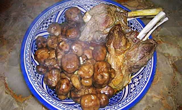 Faire découper l’épaule en morceaux, avec l’os. Utiliser de préférence un tajine ou une cocotte en fonte. Faire légèrement dorer la viande dans de l'huile.