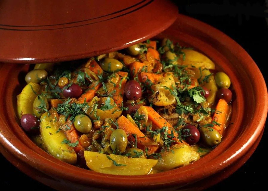 Sortez le poulet de la cocotte, ajoutez les olives et les quartiers de citron, et laissez mijoter 10 à 15 minutes à découvert. Remettez le poulet dans la sauce et réchauffez. Servez le tajine de poulet au citron confit et aux olives très chaud.